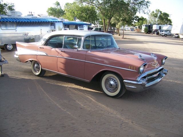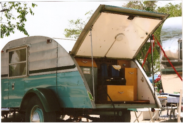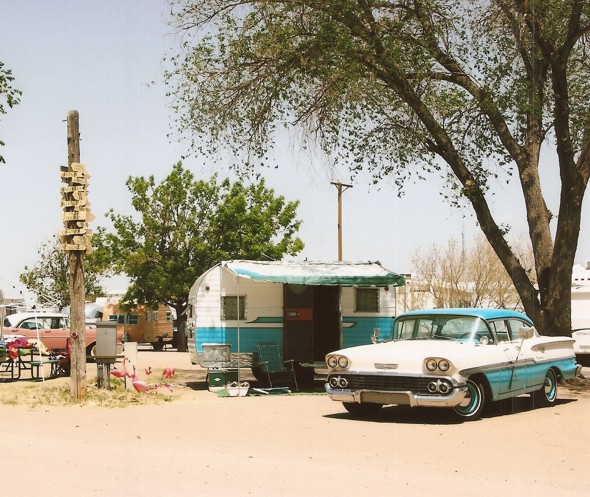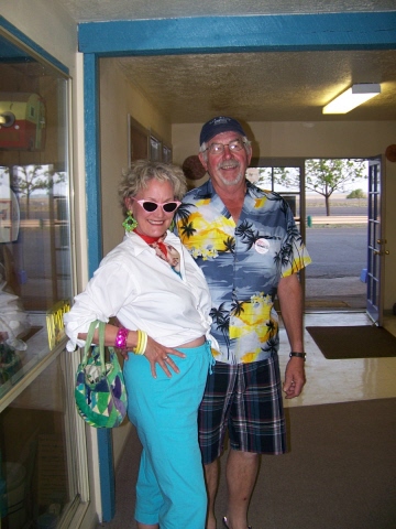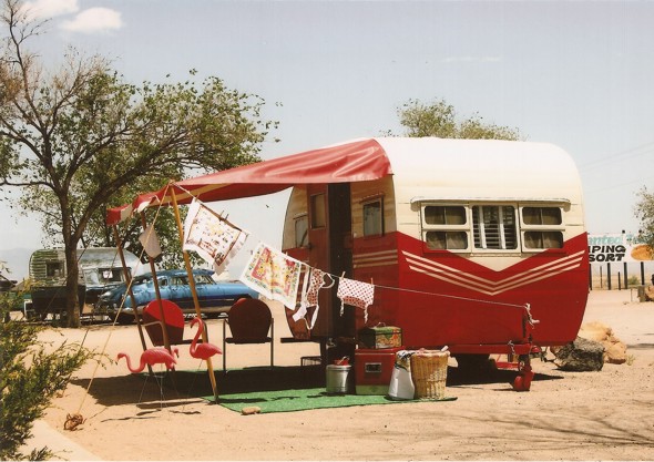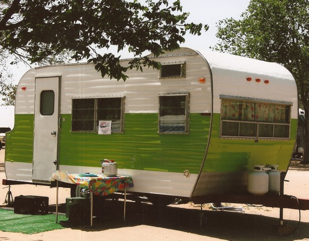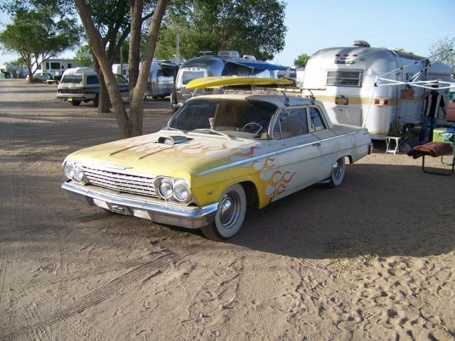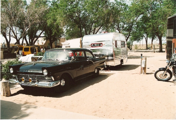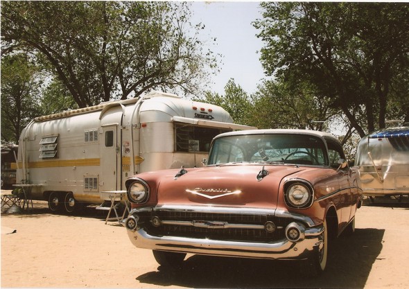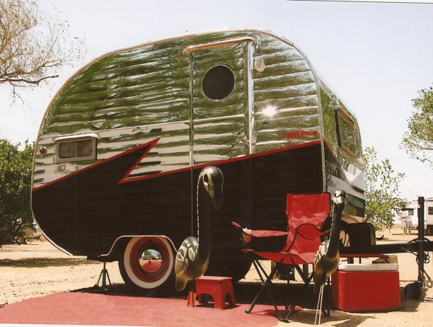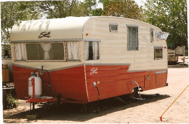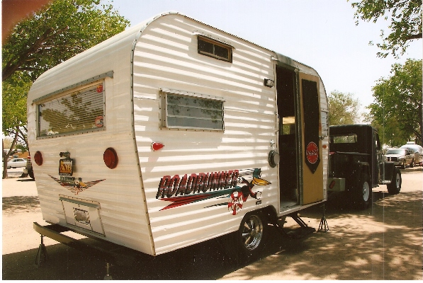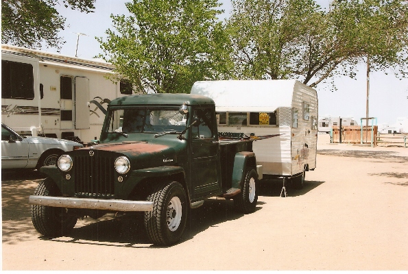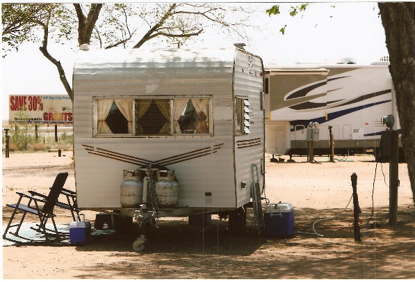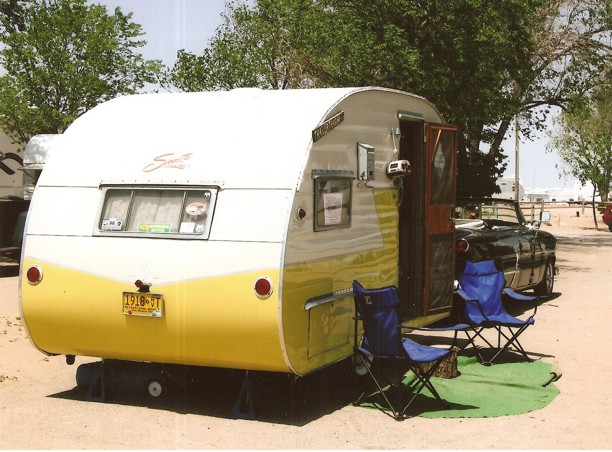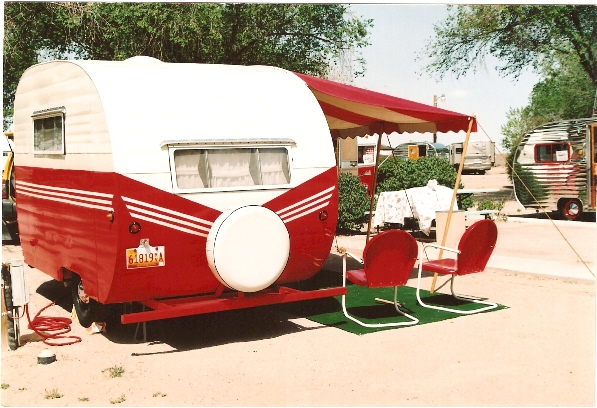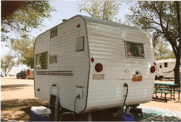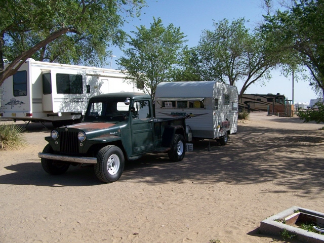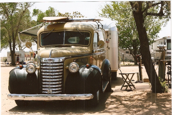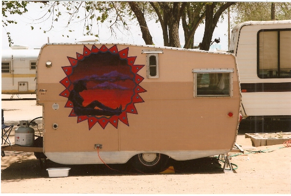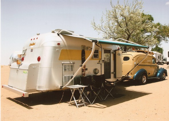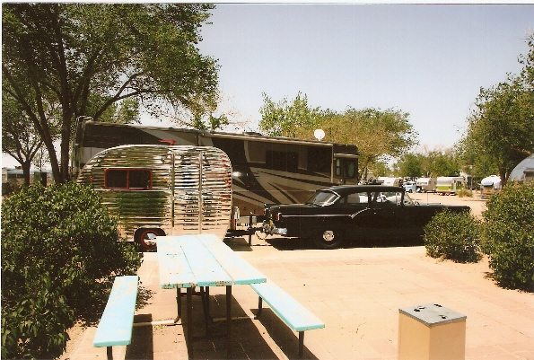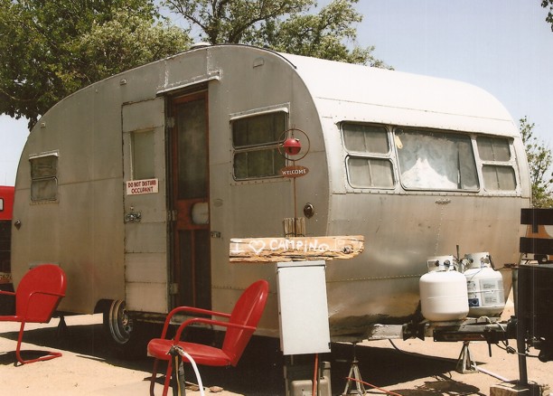 Great turnout for this first time event! About 35 Vintage campers, many pulled by classic cars and trucks made the trek to the top of Nine Mile Hill just west of Albuquerque. The Enchanted Trails was originally the Hilltop Trading Post right on old Route 66, a sure stop for many a vintage camper when they were new. We did have some bad luck with the weather...wind, and lots of it! Unfortunately it moved almost everybody inside for the weekend, but we had plenty to keep us entertained and it was still a fun weekend. We wrapped up the weekend with a Saturday night sock hop, most folks dressed the part and looked sharp! Watch the SWVCA Events page for more information on the 2nd Annual Route 66 Rendezvous, May 22-24, 2009!