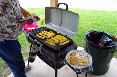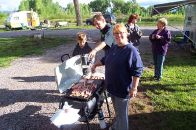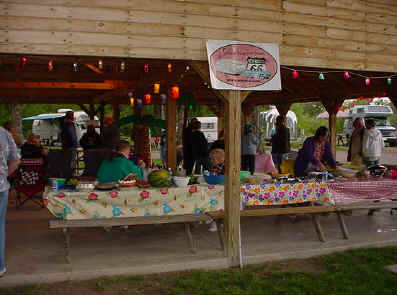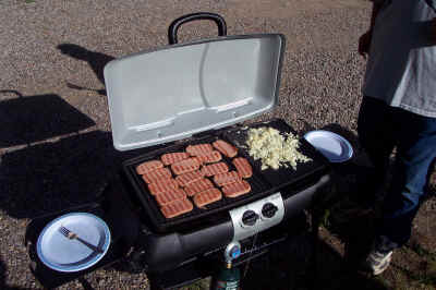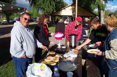 We finished up the weekend with a Pancake Breakfast to send everybody home on. As Roy & Angela cook up four boxes of pancake mix, Patsy grills 140 sausages, 5 lbs of bacon, and 3 ham steaks. Previous Page > The Campers Page 5