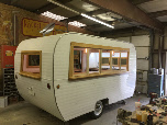 We restore park models too, such as this 25' 1961 Lakewood Deluxe.  Restored to origianl design, click HERE to see the beautiful knotty pine interior.