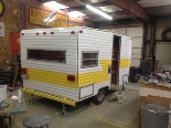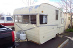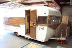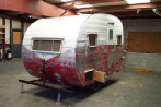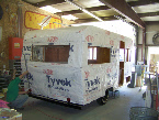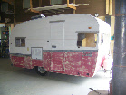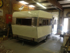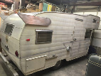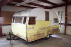 Turned over in a tornado, this 64 Cardinal was salvaged and turned into a photo shop.  We eliminated the big overhead bunk section.