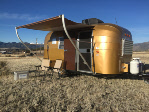 1965 Avion features a gold wrapped exterior and a full custom interior in a rustic mountain cabin theme.  Featured in Vintage Camper Trailers magazine.  Click HERE to see inside.