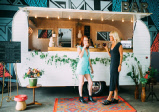 British built 1973 Sprite Alpine turned into food cart, the Love Pop Whimsical Treats and Inspired Eats.  All wood work is distressed beetle kill pine.