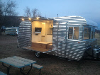 1959 Aljo converted into a mobile cocktail lounge, the Cocktail Caravan.  The trailer had been previously gutted, perfect for a conversion.