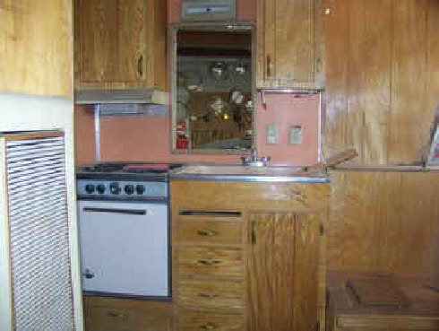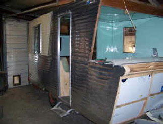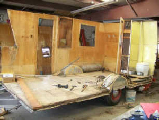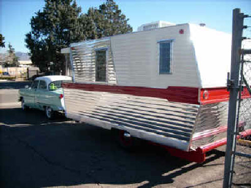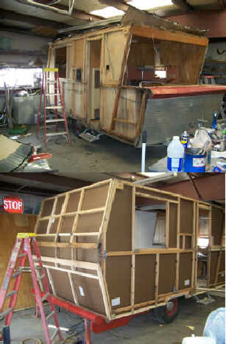 The exterior was restored pretty much the way it came from the factory. We even used the grained aluminum along the bottom and on the door just like it came new. Some of the challenges we faced was restoring the cap over the front windows, early Holiday Houses were steel (later fiberglass) and was rusted out pretty bad, and forming the new curved Lexan windows was tricky.