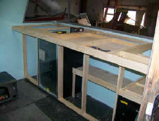 bar sink, the rear cabinet held the entertainment system. The countertop is Formica