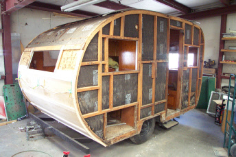 Great start for a vintage camper restoration. Very complete trailer, but about 25% of the interior paneling had water damage, which we repaired as usual.
