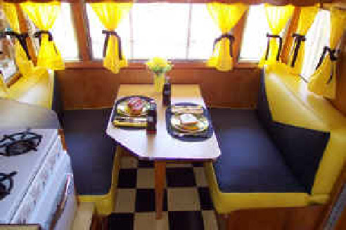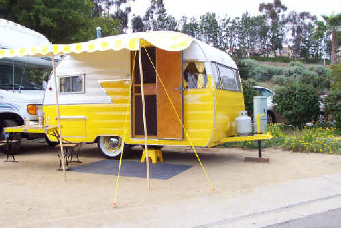 Below, sporting its new awning we took it to the big Newport Dunes Rally in California to display and advertise it for sale (it sold!). It caught the eye of a freelance newspaper reporter that was writing an article on the vintage camper movement... He featured it and that article was published in papers nationwide.