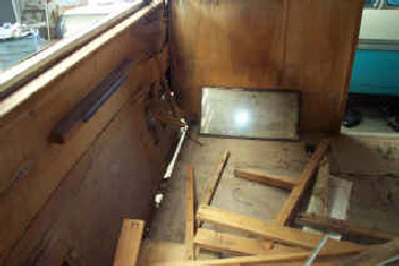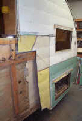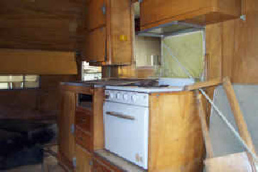 How’s this for a wreck ready for a trip to the dump? It’s in bad shape but it has what we look for... The windows were all there, the stove, icebox and bench seat frames. Despite all the water damage to the body, the cabinets were in pretty good shape. The owner even threw in the cheap big box store paneling and 2X4s he bought to “fix it up”. Fortunately he gave up before he started gutting it.