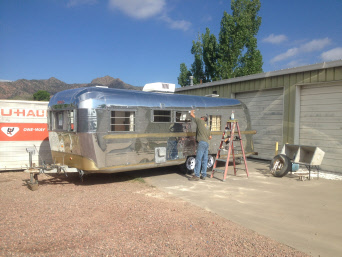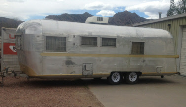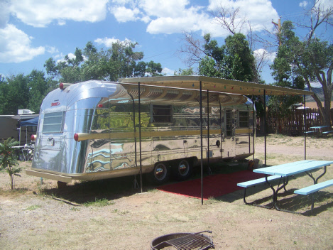 "Sophie" as it is now known is all set up in the park with a patio cover, firepit/grill and picnic table. You can stay in Sophie by going to www.theStarliteCampground.com and making a reservation!