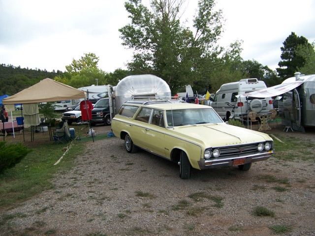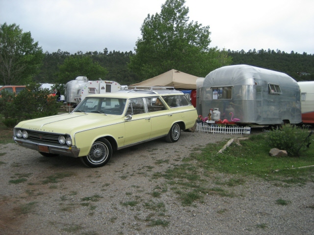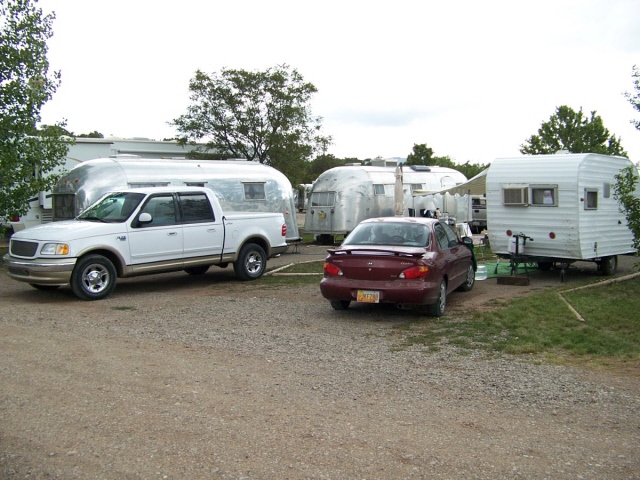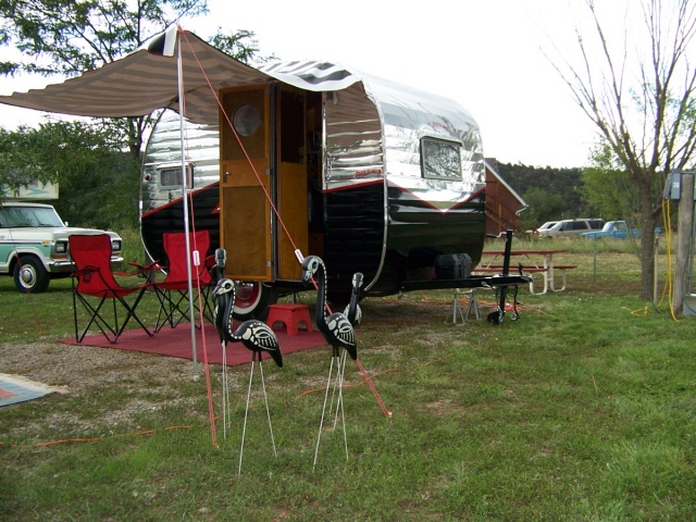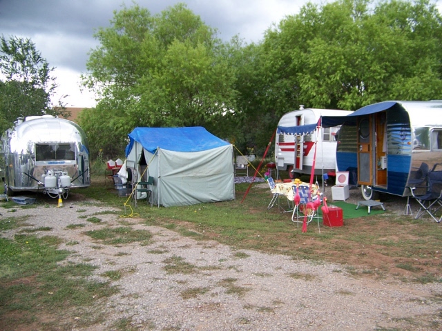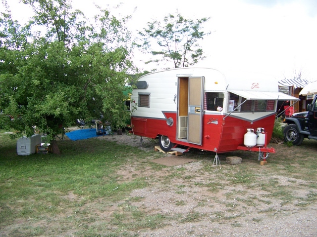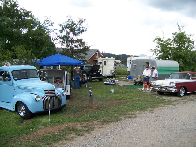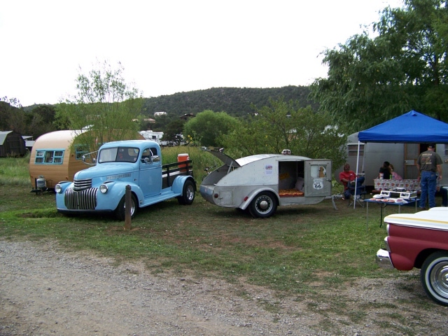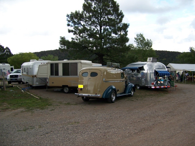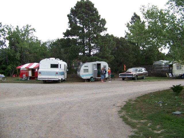 and one old motorhome. Many of the trailers were pulled by vintage cars of