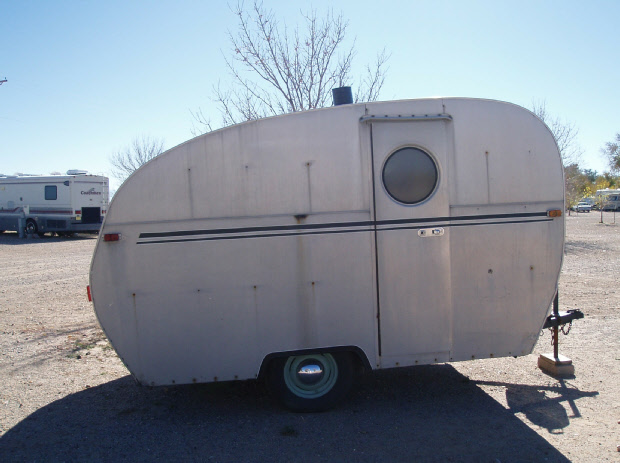 This little trailer was purchased on Ebay just by photos Looked pretty good, but close inspection showed quite a bit of water damage. Once we got the skin off it turned out to be severe water damage, in fact the bolts holding the body to the frame were completely rusted away! Scary that it made a trip from MI without falling apart. We ended up scrapping the entire body, building a new one using the original parts as patterns