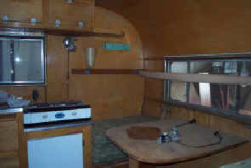 With a combo of polished and painted skin and the new cabin with the original cabinets refinished it’s looking good. We used a Marmolium floor, new upholstery and restored the stovetop and icebox.